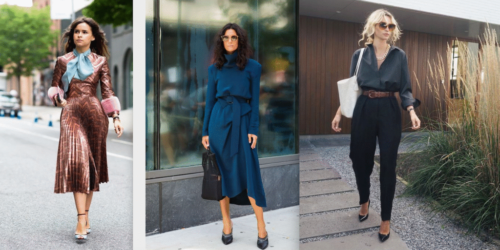 💡 Pro Tip: If you don’t have time to change after work, carry bold accessories and switch into party-ready shoes.